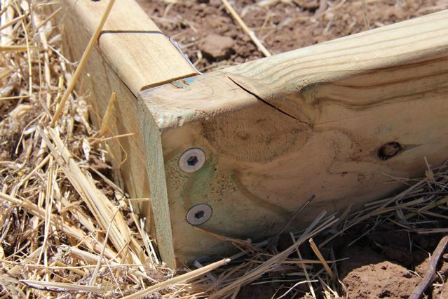 For our first pad, we constructed the square, using 100mm screws in the corners and supported by corner plates on the inside edge, then dug out the edges so the square frame sat level. While the ground level inside the frame was not level, at its highest, it was still 75mm below the top edge of the frame. For the second frame, we used the front bucket of the tractor to scrape out a level area, then placed the timber frame on top, with only minimal adjustments required. We fixed the frames in place by knocking galvanised rebars into the ground on the outside edge of the frame, securing them to the timber with copper plumber’s clips. A bit more blingy than intended, but it does the trick.