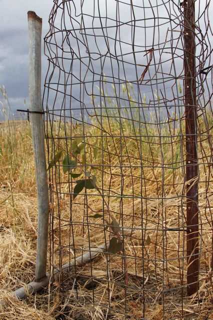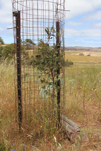 Now at the two year mark, we are noticing change. Removing cattle and fencing sensitive areas has allowed a fuzz of groundcover to begin growing over the barest of gullies. Fences have reoriented deer and kangaroo movement and grazing patterns. Some seedlings planted in the cold, soggy winter of 2013 appeared to die, but then surprised us by resprouting and growing at a cracking pace the following autumn. Other plants that were repeatedly pruned back to their tree-guard height by roos have invested their growing energy into roots and woody stems.