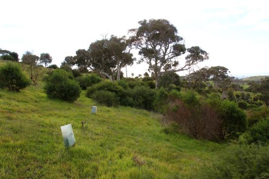 View 2 2017: Note that the Acacia pycnantha in the foreground still hasn’t emerged from the tree guard due to kangaroo grazing.