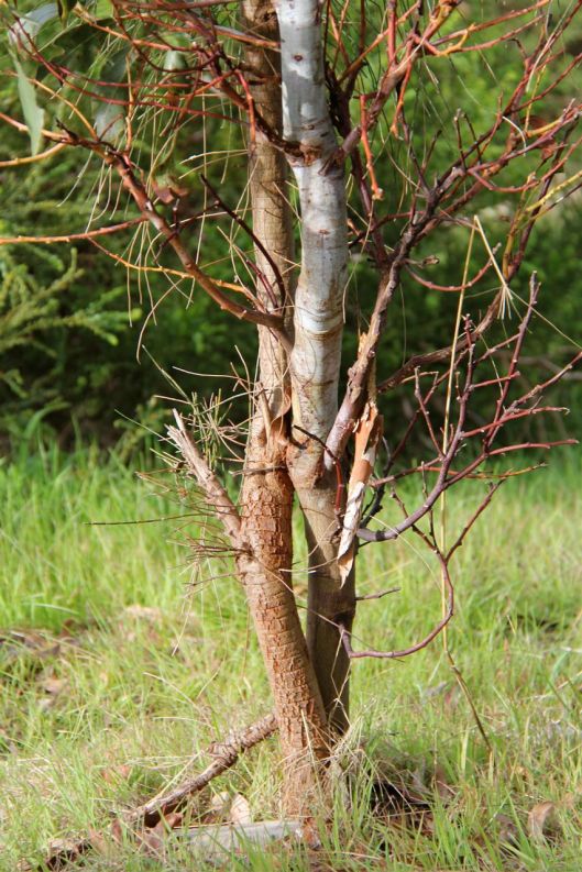 Entwined Acacia pycnantha and Allocasuarina verticillata, growing fine.