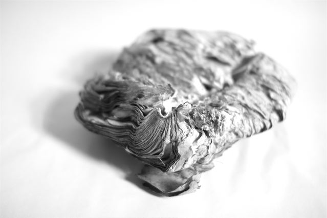 This delicate sculptural form is, unfortunately, not some rare and delicate fungus, but a well-loved copy of the novel Blackout, by John J Nance, a writer Publisher’s Weekly enthusiastically describes as “arguably the king of the modern-day aviation thriller”. Sometime ago, you could have delighted in the “non-stop action, never-say-die theatrics and stealth conspiracies” of this volume, and while Publisher’s Weekly warns that the “silly romance” between the two main characters should have been “jettisoned on takeoff”, Nance’s talent for “hair-raising in-flight emergency scenes” remains undiminished.