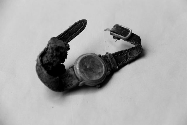 This lock was found, together with three other similar locks buried beneath a Pick-up-sticks-style pile of concrete pylons. Their proximity to each other suggests that they were dumped as a collection, and continues to raise questions about the circumstances of the dumping. The array of items present almost seems to suggest that an entire house, complete with furniture and personal effects, was loaded onto a truck and tipped into the gully. As evidence of this, there are even loose kitchen drawers, still filled with cutlery.