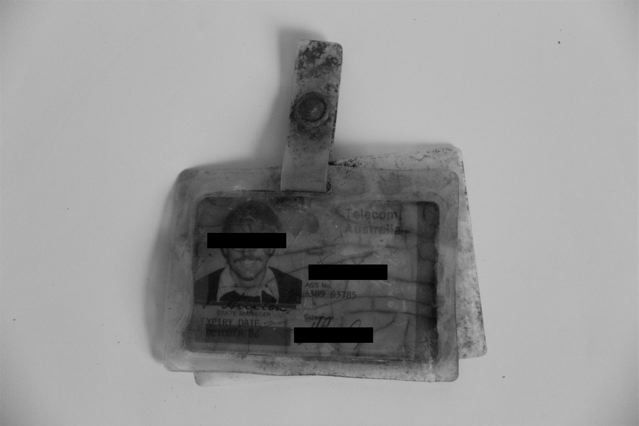 We began our clean-up in a pile of household rubbish adjacent to our preferred picnic spot. After clearing beneath mattresses that had rotted away to nothing more than a dusty mat of felt and a snarl of rusty springs, and sifting through good-as-new perma-pine posts and long-dry textas, we dug up this ID card. Perhaps the date (1986) gives a clue to the vintage of this particular junk pile. Indeed, the taste in partly-rotted textiles and abandoned shoes in this particular dump has a distinctly 80s vibe. The expiry date has a poignance: while the intended purpose of this particular object formally ended almost 30 years ago, its plastic capsule has ensured its persistence well into the next century.